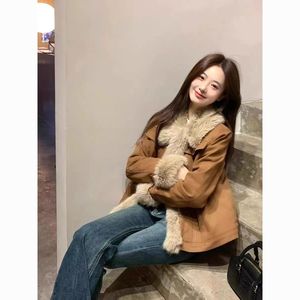2025冬新款美拉德棕色复古麂绒皮外套女短款减龄小个子年轻款外套