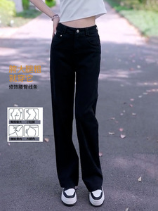 少女感牛仔裤女款2025秋季新款休闲舒适女裤高腰显瘦垂感阔腿裤子