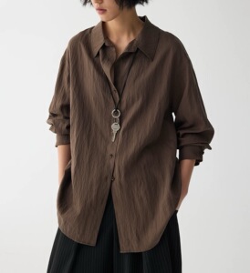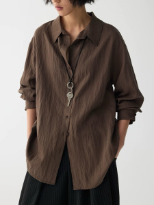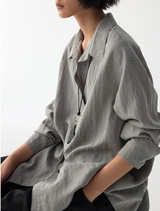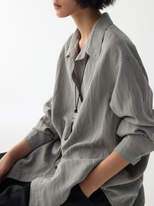 雾色流光 松弛V领流动肌理感垂坠收腰衬衫衬衣上衣