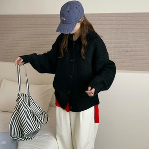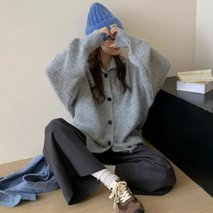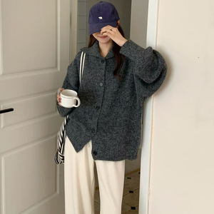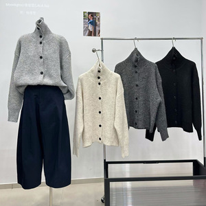 韩版简约纯色立领单排扣针织衫女2025秋冬新款百搭慵懒风毛衣外套