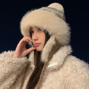 民族风保暖护耳帽冬季帽子女可爱毛绒雷锋帽加绒加厚御寒针织帽子