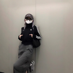 2025ad秋季jennie同款复古休闲短外套三条杠显瘦立领卫衣夹克上衣