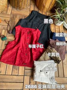 2025秋韩版宽松简约亚麻贴布口袋双层马甲百搭休闲无袖上衣女2686