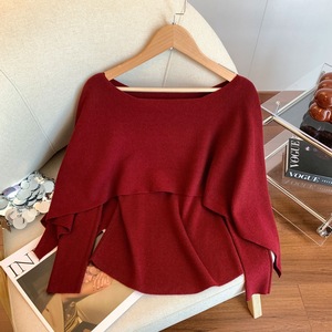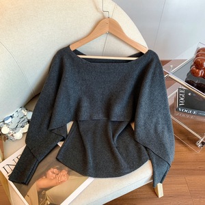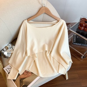 新款氛围感早秋穿搭独特好看一字肩针织外搭斗篷披肩两件套上衣女