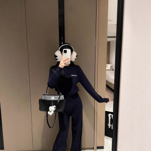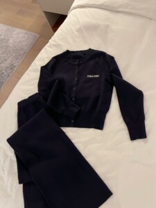 mm25秋冬新款减龄提花字母加厚针织开衫外套➕长裤套装