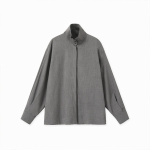 ELISISSI十三行口袋高领长袖衬衫女2025秋装新款高级感气质衬衣