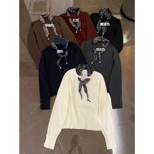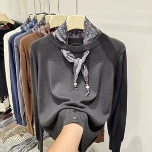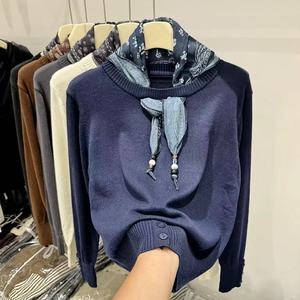 韩版圆领丝巾针织衫毛衣女2025秋冬新款百搭显瘦洋气套头长袖上衣