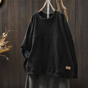 卫衣女2025新款秋季圆领慵懒风宽松双口袋复古百搭设计感简约上衣