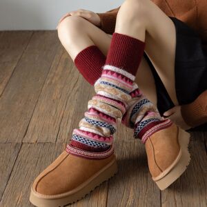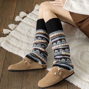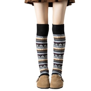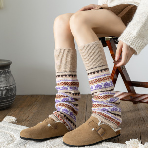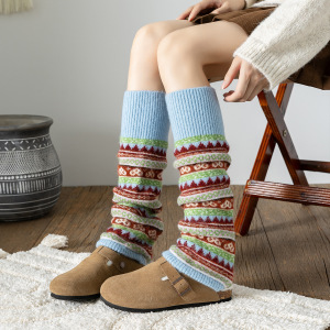 复古针织堆堆袜套民族风爱心腿套女加厚小腿袜长筒过膝袜保暖靴套