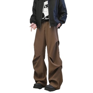 新品美式宽松褶皱阔腿拖地微喇垂感休闲裤黑色西裤男