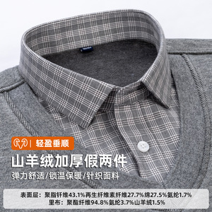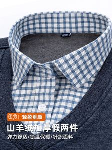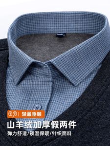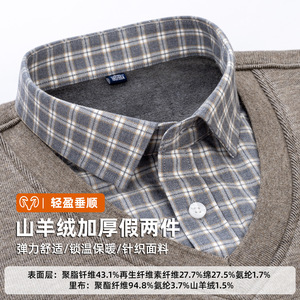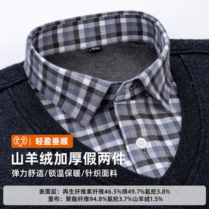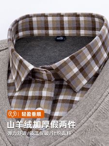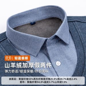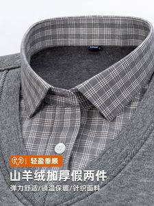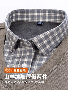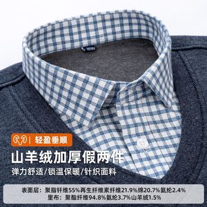 山羊绒假两件衬衫冬季新款长袖加绒加厚毛衫打底衫爸爸保暖男衬衫