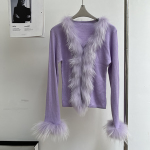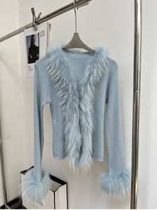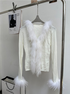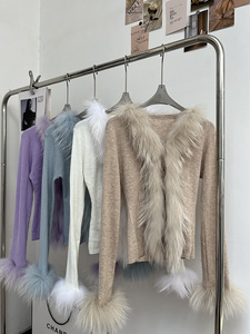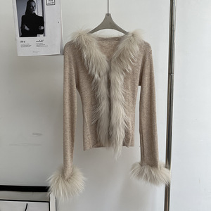 2025秋韩版修身针织开衫女白月光气质时尚时髦洋气貉子毛皮草毛衣