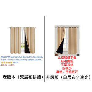 350gsm【升级版】全遮光亚马逊跨境窗帘背面黑色内衬卧室纯色窗帘