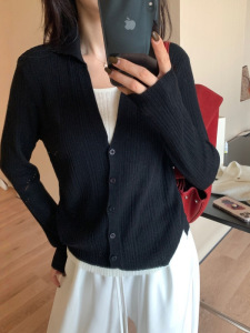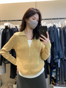 2025秋季新款气质假两件撞色针织衫女装显瘦长袖上衣翻领打底毛衣