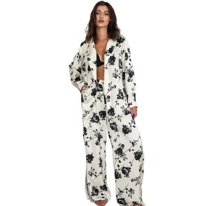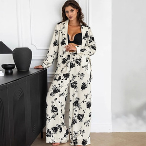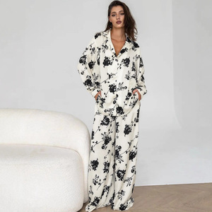 欧美秋季新款印花长袖长裤宽松舒适睡衣两件套2025跨境批发家居服