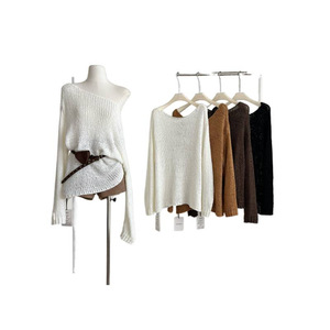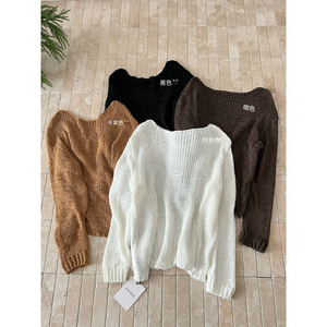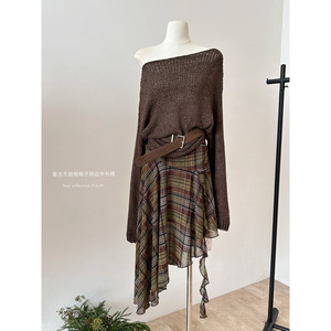 塞纳2025秋季新款通勤韩版斜领套头针织衫上衣宽松慵懒镂空毛衣