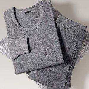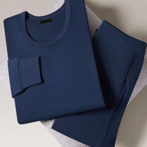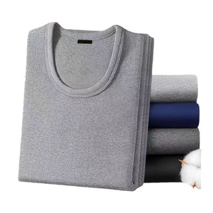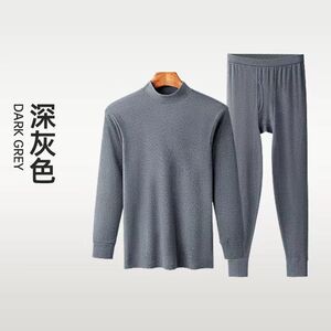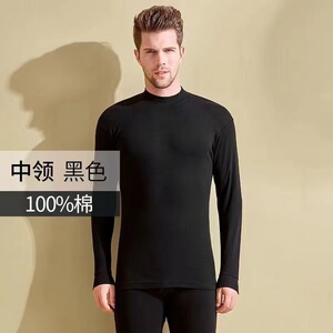 100%纯棉保暖内衣秋衣秋裤套装男士中圆领全棉打底棉毛衫加厚保暖