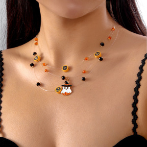欧美跨境新款万圣节项链百搭搞怪万圣帽子幽灵猫脸锁骨链多层项链