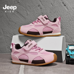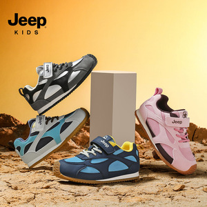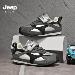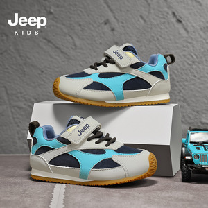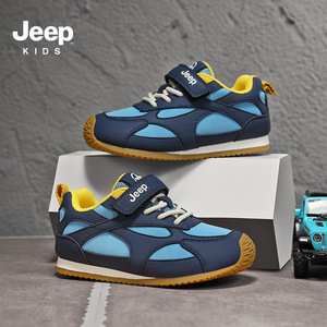 Jeep童鞋2025秋冬新款皮面防水儿童运动鞋便捷魔术贴男童跑步鞋潮