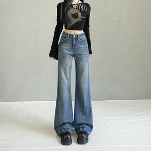 秋冬宽松微喇牛仔裤女弹力重工高腰辣妹修身百搭微阔马蹄喇叭裤