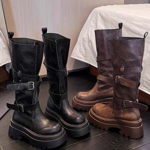 7cm厚底长筒靴女款2025新款秋季棕色靴子美拉德骑士靴高筒瘦瘦靴