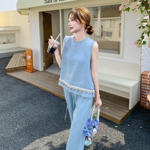 蓝色套装【无袖上衣+阔腿裤】