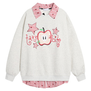 51嘻哈美式街头字母印花宽松翻领卫衣男女潮牌学院风假两件POLO衫