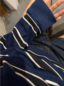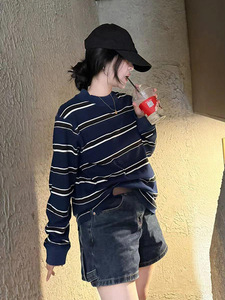 巨好看设计感上衣法式宽松休闲套头藏青色条纹长袖t恤女2025秋季