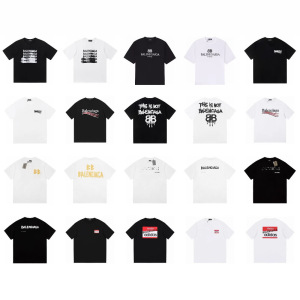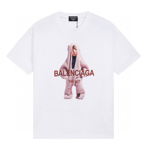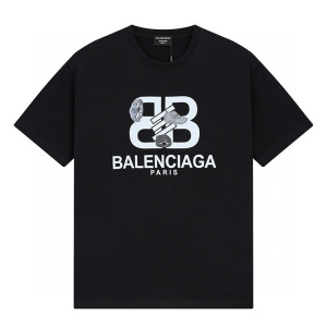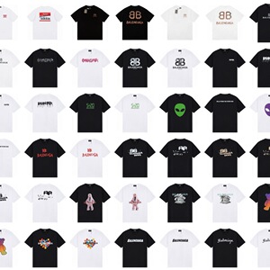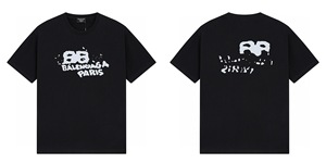 跨境潮品B家印花字母logo短袖高质量奢潮欧货圆领男女宽松T恤
