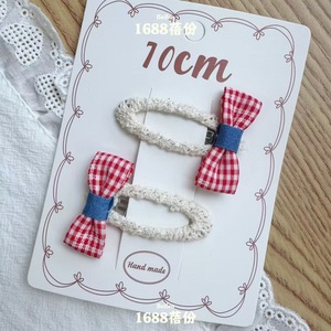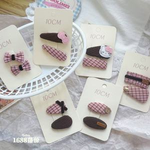 韩版复古格纹紫色蝴蝶结布艺BB夹儿童发饰碎发发夹元气可爱掰掰夹