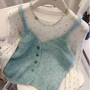 氛围感温柔彩纱针织吊带背心女秋季新款百搭显瘦气质软糯毛衣上衣