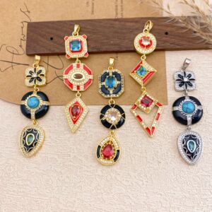 XL5038方形菱形长吊坠金色红