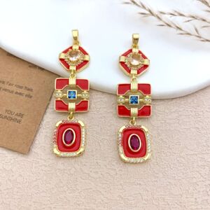 XL5179方形几何长吊坠金色红