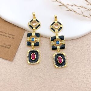 XL5179方形几何长吊坠金色黑