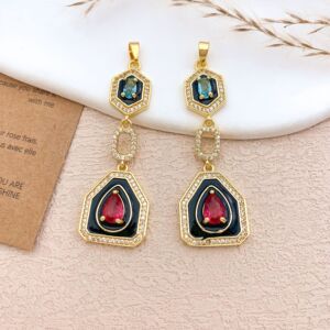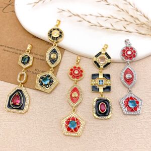 XL5190方形水滴长吊坠金色红
