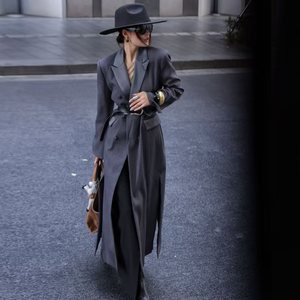 深圳南油女装年秋季时尚神范设计气质大翻领西装长袖连衣裙配