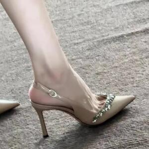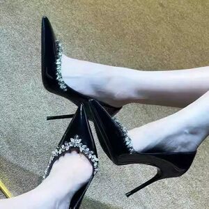 黑色水钻百搭高跟鞋女秋冬尖头2025新款高级法式网红新款气质单鞋