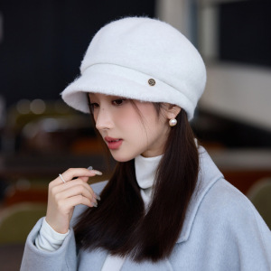 韩系百搭加绒加厚帽子女秋冬显脸小防风保暖贝雷帽文艺复古画家帽