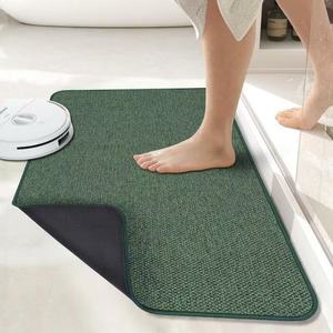 新款现代简约纯色亚麻硅藻泥家用浴室卫生间吸水速干防滑入户门垫