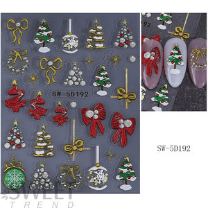 跨境新款圣诞系列美甲贴纸批发5D浮雕立体卡通圣诞老人雪花背胶贴