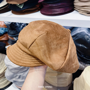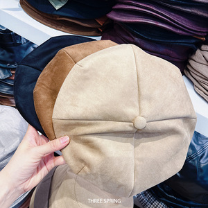 批发韩国2025年早秋新款复古纯色褶皱八角帽女文艺英伦防晒报童帽