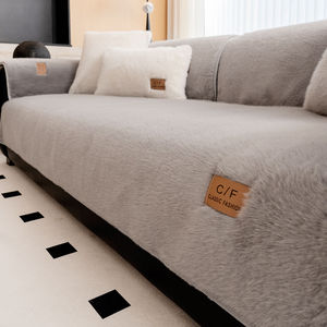 高级感雪貂毛绒沙发垫秋冬季2025新款直排皮沙发固定防滑坐垫盖布