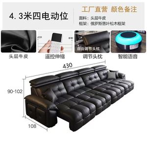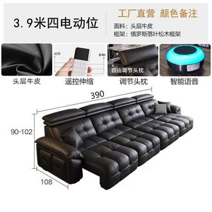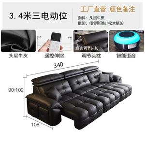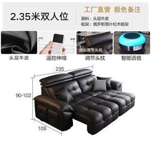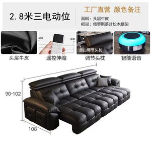 新款沙发靠墙可伸缩电动功能沙发意式现代极简客厅头层牛皮沙发床
