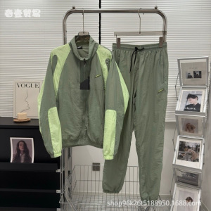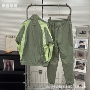 春秋季防风服男女同款运动梭织套装立领夹克风衣拼接刺绣标7667
