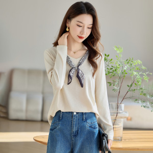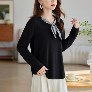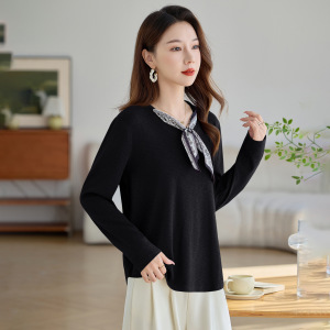 2025新款时尚气质休闲高级感显瘦减龄时髦洋气丝巾搭配针织衫