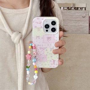 闪粉拼接粉色蝴蝶结碎花 壳+链条