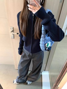 OOKSTUDIOS拉链毛衣针织开衫女2025秋季辣妹短款显瘦百搭外套潮