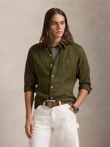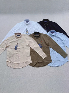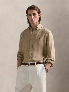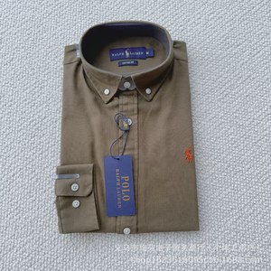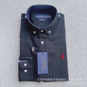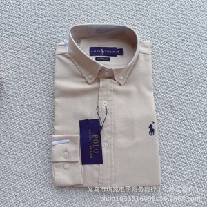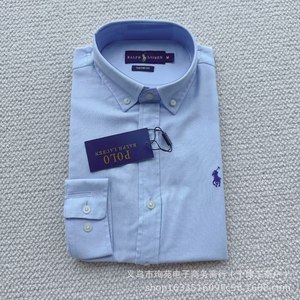 高品RL拉夫小马刺绣经典棉麻长袖通勤情侣老钱风百搭衬衫纯色