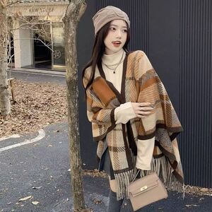2025新款仿羊绒山水画民族风女围巾披肩羊绒斗篷披风高级感外搭