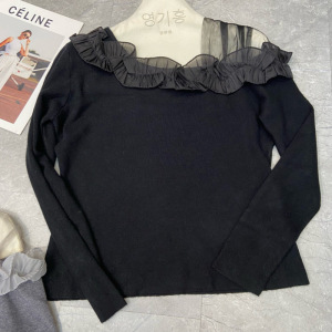 韩系花边长袖拼接针织衫修身2025秋季时尚气质显瘦百搭女套头上衣